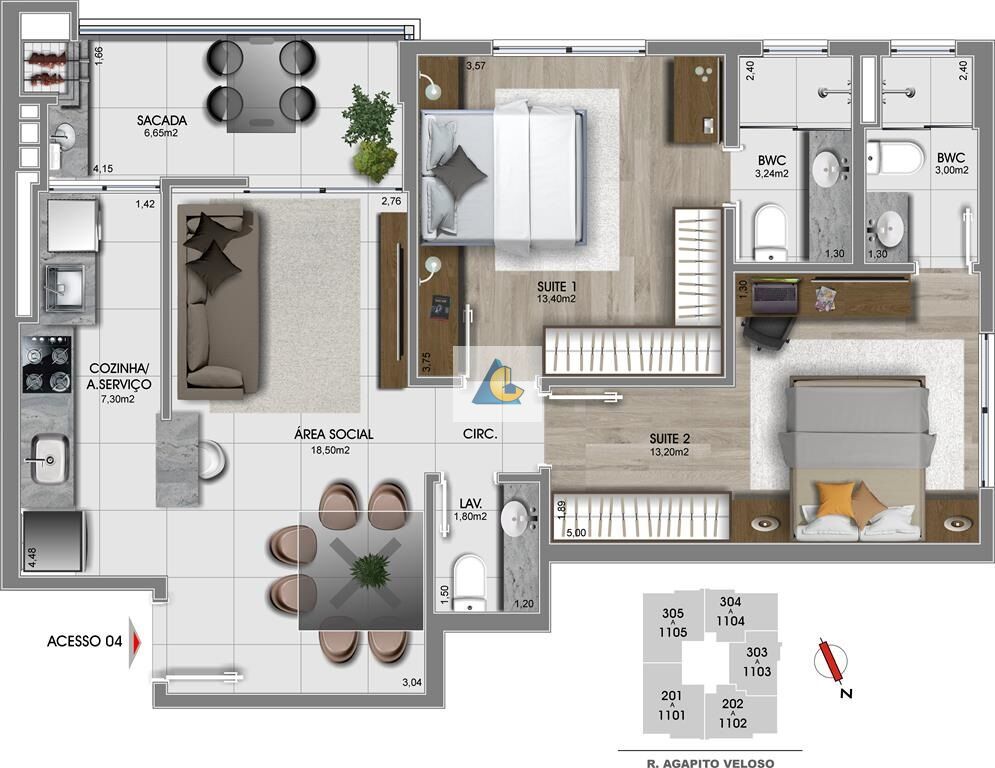 Apartamento 2 suítes e lavabo, Bairro Estreito, Florianópolis/SC